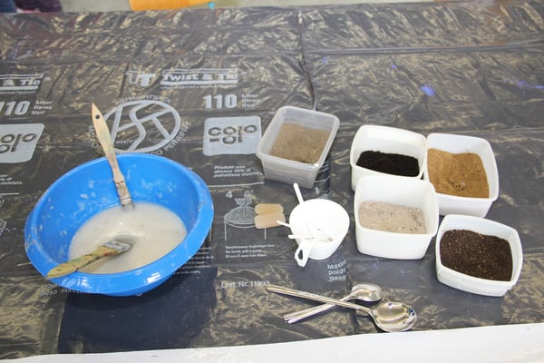 Ins Innere der Erde (Film), Versuche mit verschiedenen Erdarten (Wasserdurchlass / Filter), Sandstreubild, Kleisterbild mit Erde